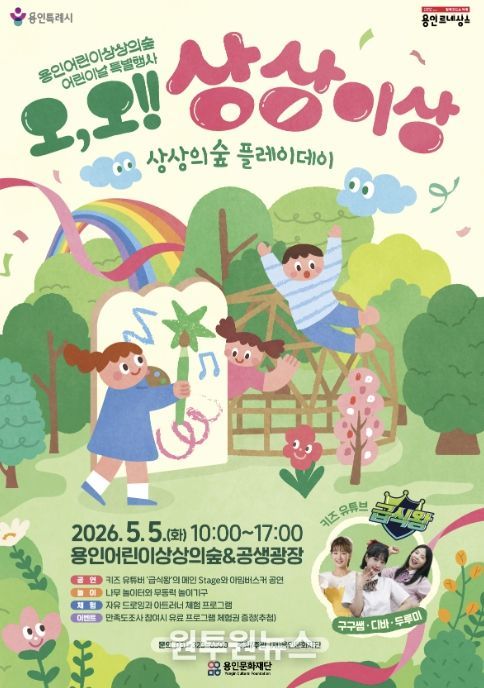 (원투원뉴스) 용인문화재단은 오는 5월 5일 어린이날을 맞아 용인어린이상상의숲에서 2026년 어린이날 특별행사 ‘오, 오! 상상이상’을 개최한다고 밝혔다.