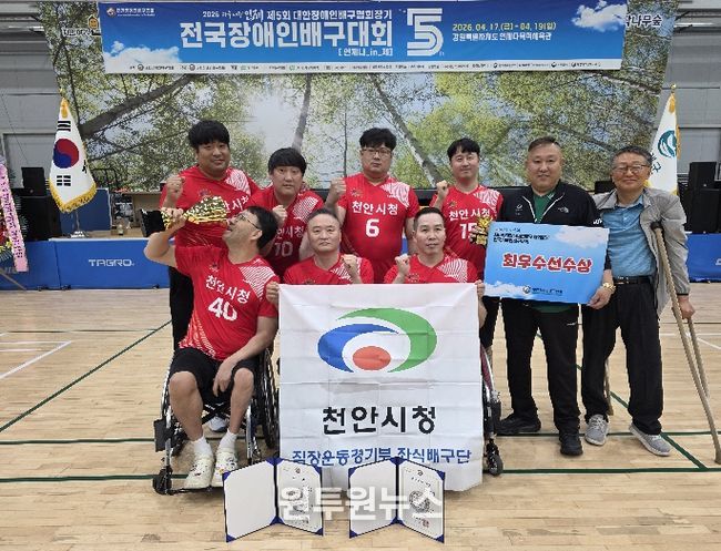 천안시는 지난 17일부터 19일까지 강원 인제군에서 열린 ‘제5회 대한장애인배구협회장기 전국장애인배구대회’에서 시 소속 좌식배구팀이 남자 전문부 정상에 올랐다고 21일 밝혔다.