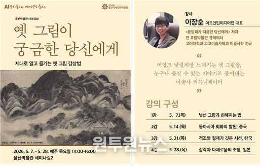 울산박물관은 오는 5월 7일부터 28일까지 매주 목요일 오후 2시부터 4시까지 2026년 상반기 주제(테마)강좌 ‘옛 그림이 궁금한 당신에게’를 운영한다고 밝혔다.