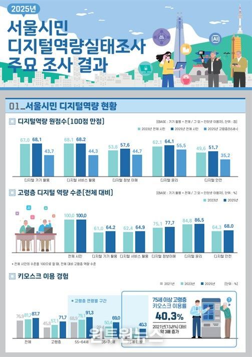 (원투원뉴스) 서울AI재단이 서울시민 5,500명을 대상으로 실시한 ‘2025년 서울시민 디지털역량실태조사’ 결과, 서울시민의 디지털 역량은 높아졌지만, AI 활용과 준비 수준에서는 세대 간 격차가 뚜렷했다.