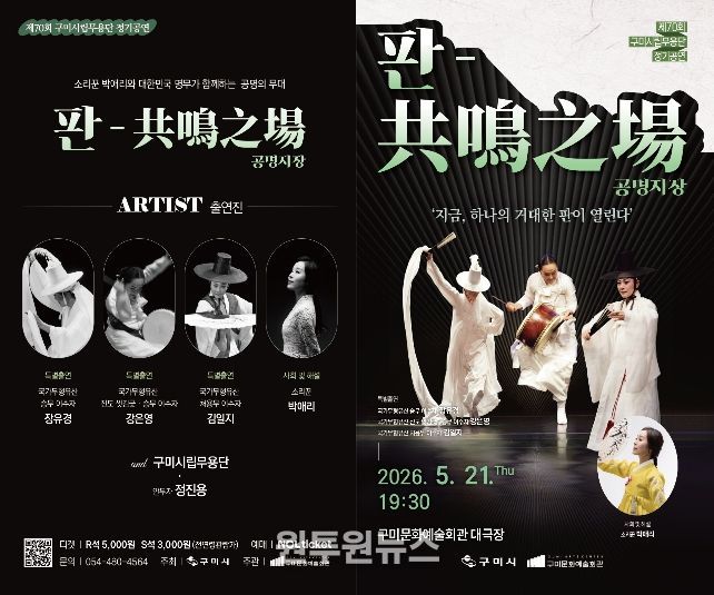 (원투원뉴스) 구미시는 5월 21일 오후 7시 30분, 구미시문화예술회관 대공연장에서 ‘제70회 구미시립무용단 정기공연 '판-共鳴之場공명지장'’을 개최한다.