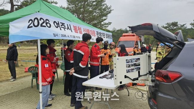(원투원뉴스) 여주시는 4월 17일 오전 10시 30분, 세종대왕릉유적관리소 일원에서 '2026년 봄철 산불대응 관계기관 합동훈련'을 실시했다.