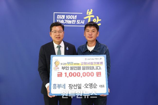 (원투원뉴스) 부안군은 지난 20일 관내에서 한식당 ‘흥부네’를 운영하는 장선일·오영순 대표가 고향사랑기부금 100만원을 기탁했다고 밝혔다.