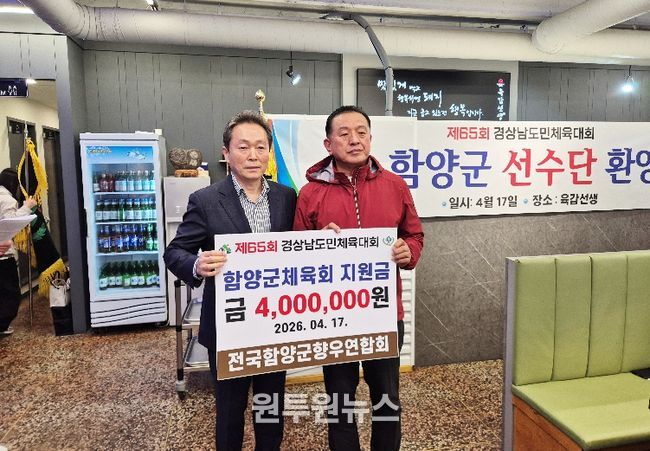 특히 이날 행사에서는 향우연합회에서 2026년 도민체육대회의 성공적인 개최와 함양군 체육 발전을 위해 발전 기금 400만 원을 전달하며, 고향을 향한 향우들의 변함없는 애정과 지지를 보냈다.