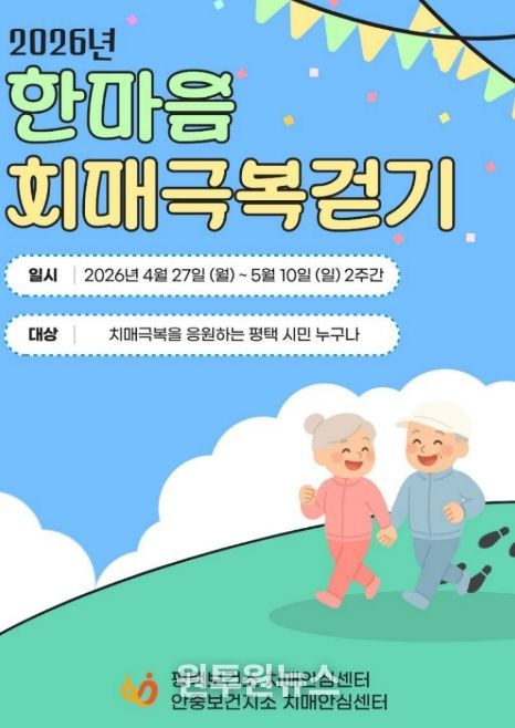 이 외에도 치매안심센터에서는 치매조기검진, 예방프로그램, 조호물품 지원, 치매치료비 지원 등 치매 환자와 가족을 위한 다양한 지원 서비스를 제공하고 있으며, '2026 한마음 치매극복 걷기 행사’관련 문의는 안중보건지소 만성질환팀으로 문의하면 된다.
