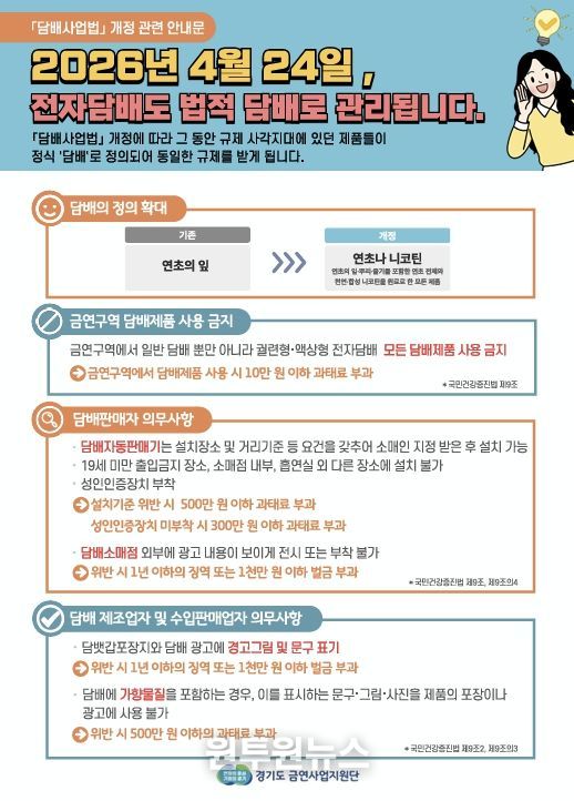이번 점검은 개정 법령에 따라 ‘연초 또는 니코틴’을 원료로 제조한 모든 제품이 담배의 정의에 포함됨에 따라, 금연구역 내 해당 제품의 사용을 원천 차단하고 시민들의 간접흡연 피해를 예방하기 위해 마련됐다.