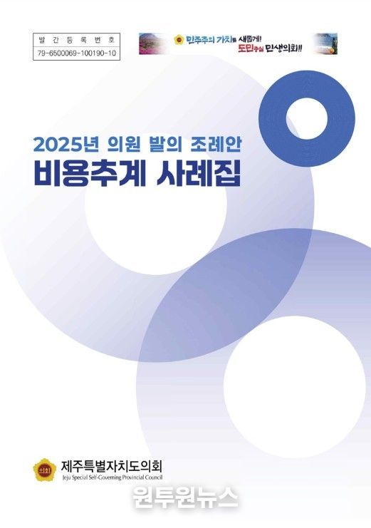 (원투원뉴스) 제주특별자치도의회는 지방재정의 건전성을 도모하고 도민의 알 권리를 증진하기 위해 '2025년 비용추계 사례집'을 발간하고, 이를 누리집에 공개했다고 21일 밝혔다.
