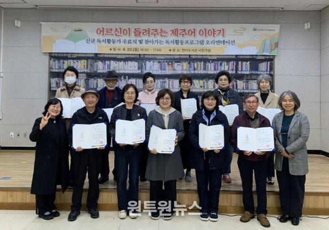 제주도 한라도서관은 20일 도서관 강의실에서 올해 ‘어르신이 들려주는 제주어 이야기’ 신규 활동가 양성과정 수료식을 열었다.