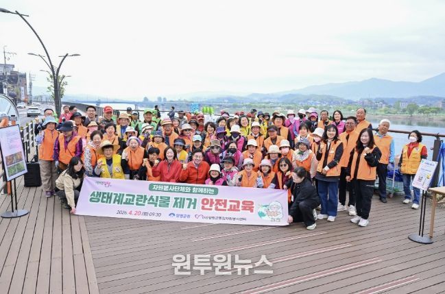 (원투원뉴스) 양평군종합자원봉사센터는 지난 20일 오전 9시 양평남한강테라스 하부 산책로 일대에서 ‘2026년 자원봉사 리빙랩 3고 YP(줍고·잇고·지키고) 사업’의 일환으로 생태계 교란 식물 제거 활동을 실시했다.