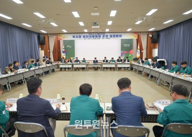 (원투원뉴스) 여주시는 지난 4월 21일 시청 4층 대회의실에서 김광덕 부시장 주재로 ‘부시장 권한대행체제 운영 점검회의’를 개최했다. 이번 회의는 20일 여주시장이 제9회 전국동시지방선거 시장예비후보로 등록함에 따라 부시장 권한대행 체제 전환으로 시정의 안정과 업무의 연속성을 유지하고 행정 공백을 최소화하고자 마련했다.