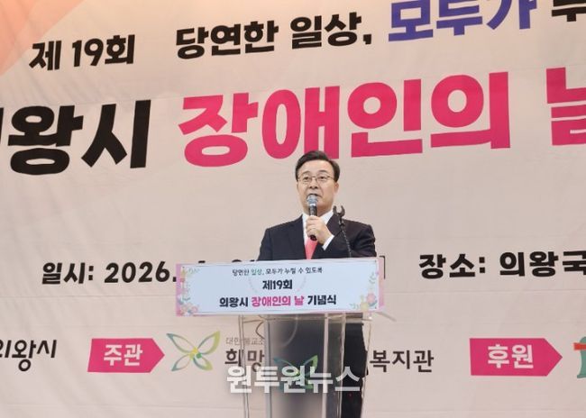 (원투원뉴스) 의왕시는 4월 21일 국민체육센터에서 관내 장애인과 가족, 내빈 등 1,000여 명이 참석한 가운데 ‘제19회 의왕시 장애인의 날 기념행사’가 성황리에 개최됐다고 밝혔다.