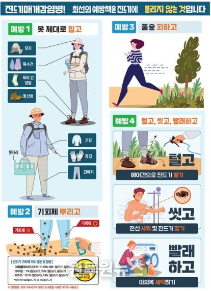 (원투원뉴스) 경상남도는 봄철 기온 상승과 야외활동 증가에 따라 중증열성혈소판감소증후군(SFTS), 쯔쯔가무시증 등 진드기 매개 감염병 예방수칙을 철저하게 지킬 것을 당부했다.