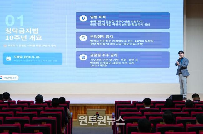 이번 설명회는 청탁금지법 시행 10주년을 맞아 법 제도의 취지를 되새기고, 교육 현장에서 반복적으로 제기되는 적용 쟁점과 판례를 공유하여 청렴 문화를 현장에 정착시키기 위해 마련됐다.