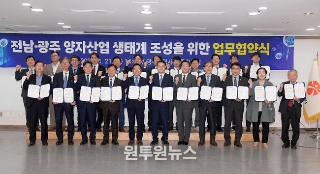 광주광역시와 전라남도는 21일 시청 중회의실에서 대학, 연구기관, 기업 등 23개 기관이 참여하는 ‘광주·전남 양자산업 생태계 조성을 위한 업무협약식’을 개최했다.
