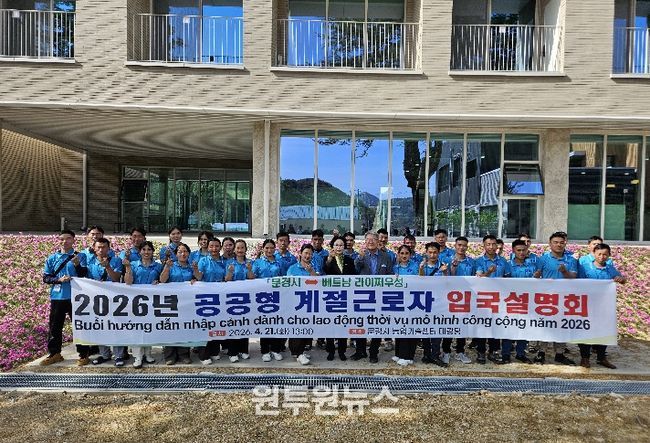 (원투원뉴스) 문경시는 4월 21일 농업기술센터 대강당에서 2026년 공공형 계절근로자 1차 입국자 30명을 대상으로 입국설명회를 개최하고 본격적인 농가 인력 지원에 나섰다.
