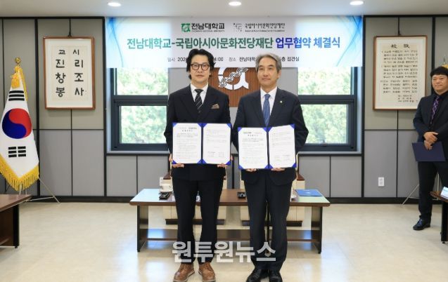 21일 전남대학교에 따르면, 전남대학교와 국립아시아문화전당재단은 이날 전남대학교 대학본부 5층 접견실에서 업무협약을 체결했다.