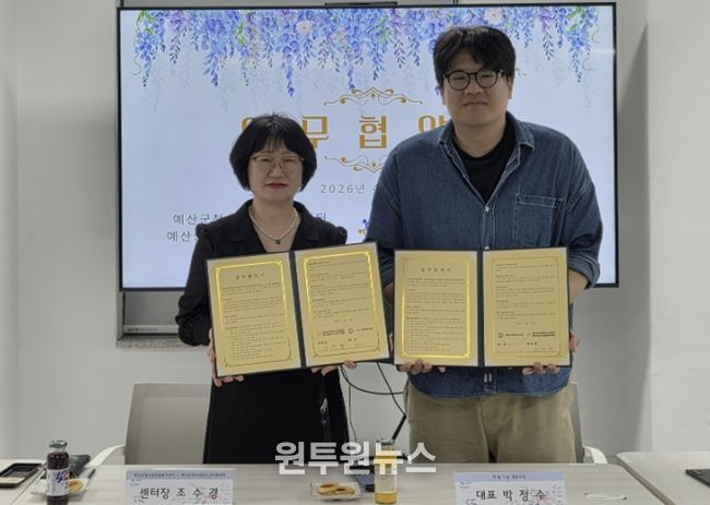 (원투원뉴스) 예산군청소년복지재단 소속 예산군청소년상담복지센터는 지난 20일 오후 2시 센터 3층 회의실에서 내:일마을 협동조합과 학교 밖 청소년 지원 강화를 위한 업무협약을 체결했다.