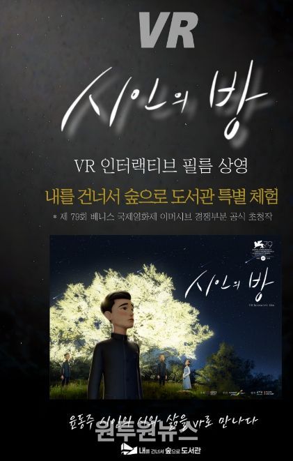 ‘시인의 방’은 윤동주 시인의 삶과 문학세계를 가상현실로 구현한 몰입형 콘텐츠로, 국가유산청과 국가유산진흥원이 배급했다. 이용자는 가상현실 기기를 착용하고 친필 원고와 시 낭송을 바탕으로 구성된 장면을 체험하며, 시 세계를 더욱 입체적으로 경험할 수 있다.