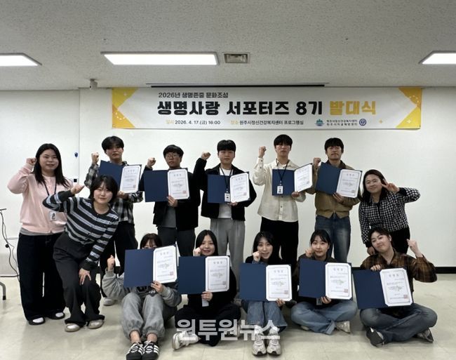 (원투원뉴스) 원주시자살예방센터는 지난 17일 자살 예방과 생명 존중 문화 확산을 위한 ‘제8기 생명사랑 서포터즈’ 발대식을 개최했다.