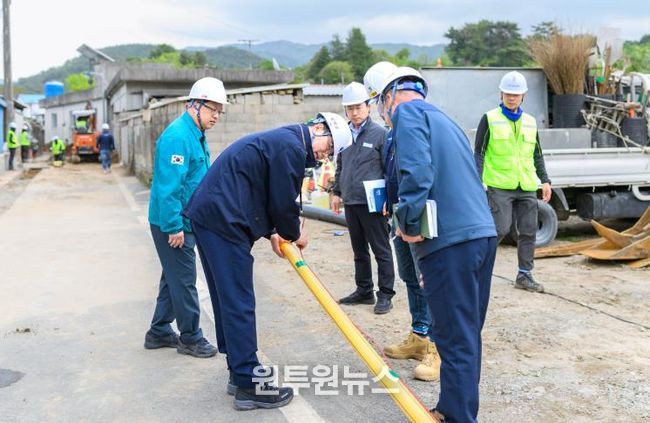 (원투원뉴스) 장충남 남해군수는 20일 이동면 면단위 LPG배관망 구축사업 현장을 방문해 공사 진행 상황과 안전관리 실태 등을 점검했다.