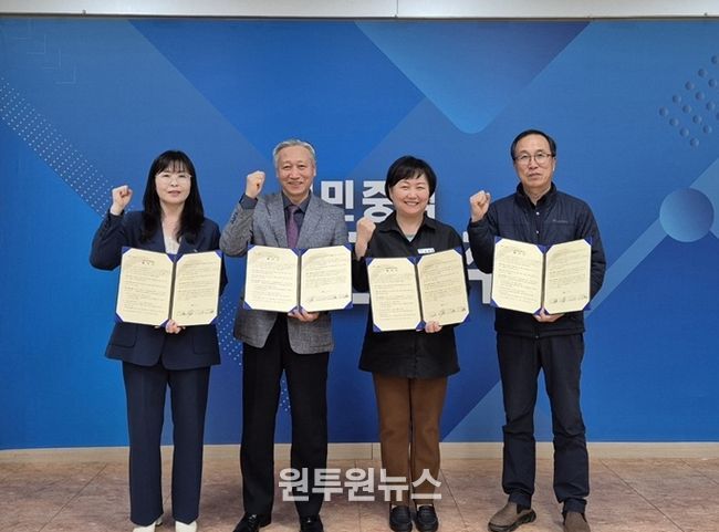 (원투원뉴스) 파주시 교하동은 지난 21일, 교하동 행정복지센터에서 ㈜밀알(대표 김면식)·파주시 운정종합사회복지관·교하동 지역사회보장협의체와 함께 지역 내 의료 취약계층 대상 가정용 의료 침대 지원을 위한 ‘교하사랑 나눔가게’업무협약을 체결했다.
