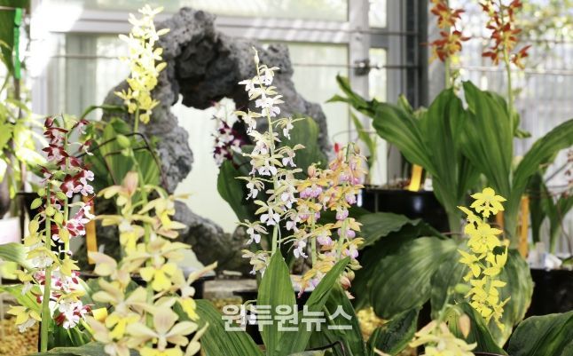 생태공원 자생란관에 전시된 자생식물 새우란은 꽃잎마다 번지는 다채로운 색감으로 공간을 물들이며 관람객에게 생동감 넘치는 봄을 느끼게 한다.