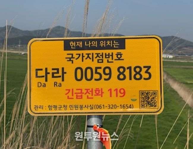 (원투원뉴스) 전남 함평군이 재난·사고 등 긴급상황 발생 시 신속한 위치 파악과 대응을 위해 설치한 국가지점번호판 일제 조사를 실시한다.