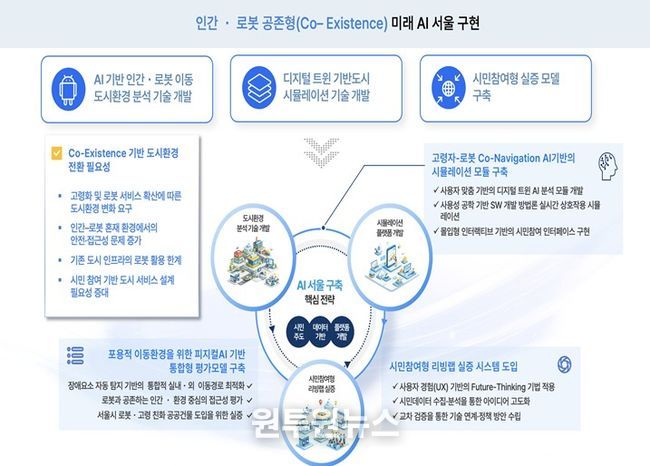 이번 연구는 로봇이 실제 도시환경에서 원활하게 이동하고 시민에게 실질적인 서비스를 제공할 수 있는 도시 인프라를 조성하기 위한 기준을 마련하는데 초점을 두고 있으며, 재단은 서울시의 정책 수요를 반영해 두 가지 핵심 과제를 추진하기로 했다.