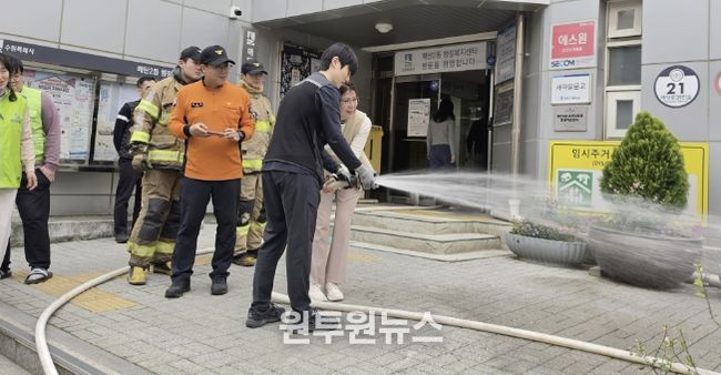 (원투원뉴스) 수원시 영통구 매탄2동은 지난 4월 21일, 원천 119안전센터와 에스에스이엔씨(소방시설물관리업체), 매탄2동 소속 직원과 지역 주민 등이 참여한 가운데 2026년 공공기관 합동소방훈련을 실시했다.