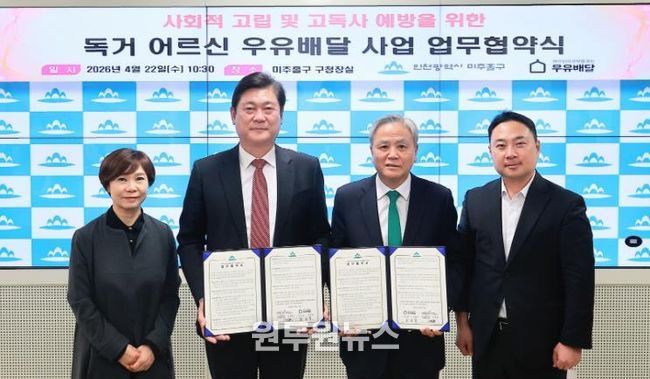 (원투원뉴스) 인천 미추홀구는 22일 (사)어르신의 안부를 묻는 우유배달과 독거 어르신의 건강한 생활 지원 및 고독사 예방을 위한 ‘어르신의 안부를 묻는 우유배달 사업’ 업무협약을 체결했다.