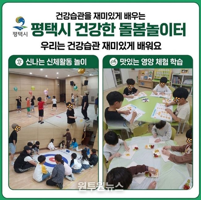 (원투원뉴스) 평택시는 아동기 비만 예방과 올바른 식습관 형성을 위해 관내 지제초등학교와 평택영신초등학교 2개교 돌봄교실 학생들을 대상으로 ‘건강한 돌봄놀이터’프로그램을 활발히 운영하고 있다고 밝혔다.