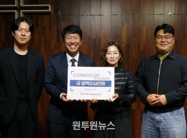 (원투원뉴스) 안성시동부무한돌봄네트워크팀은 지난 19일, 안성제일감리교회 청년부로부터 사회적 고립가구 발굴 및 지원을 위한 후원금 150만 원을 전달받았다고 밝혔다.