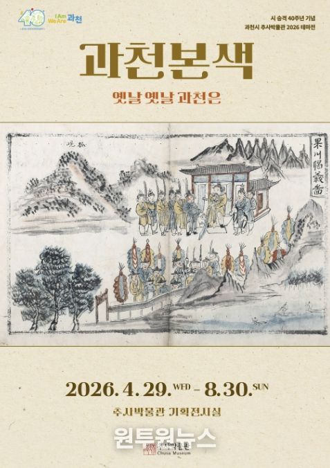 (원투원뉴스) 과천시 추사박물관은 시 승격 40주년을 기념하여 ‘2026 테마전 '과천본색–옛날 옛날 과천은'’을 개최한다고 밝혔다. 이번 전시는 4월 29일 오후 3시 개막식을 시작으로 8월 30일까지 추사박물관 기획전시실에서 진행된다.