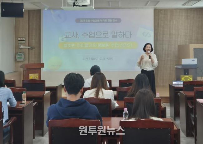 연수의 주요 내용은 ▲2026학년도 수업전문가 운영 계획 및 세부 내용 안내 ▲수업전문가 역량 강화를 위한 사례 발표 및 정보 공유 ▲수업전문가 성장 나눔 및 토의 등으로 구성되어 교사 간의 맞춤형 소통과 정보 공유를 활성화했다.