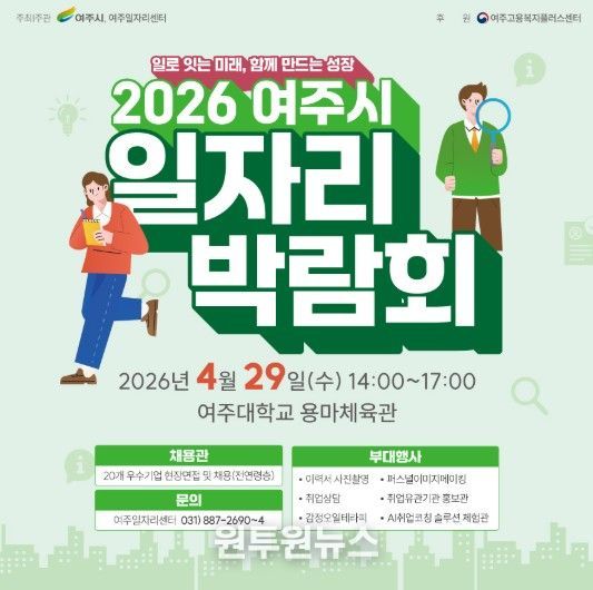 (원투원뉴스) 여주시는 오는 4월 29일 오후 2시부터 5시까지 여주대학교 용마체육관에서 2026 여주시 일자리박람회를 개최한다고 밝혔다.