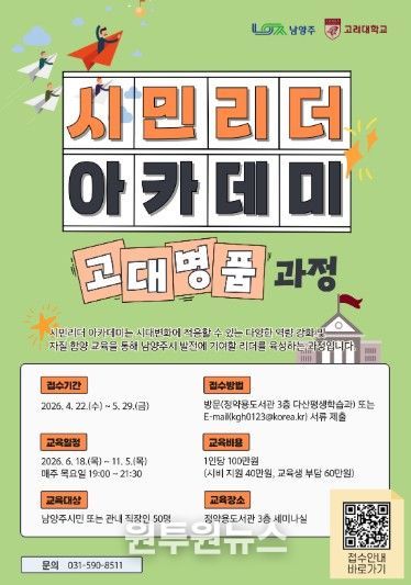 (원투원뉴스) 남양주시는 시민의 자치 역량 강화를 위해 ‘남양주시 시민리더 아카데미’ 제20기 수강생을 모집한다고 22일 밝혔다.