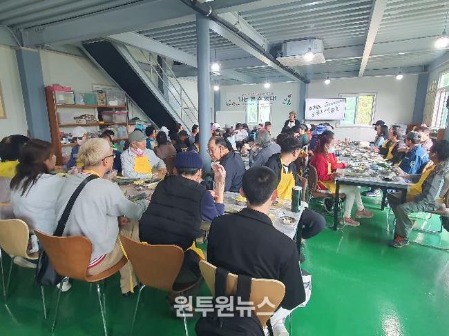 먼저 치자 연잎밥 만들기 프로그램에서는 강순연 대표와 함께 지역 식재료를 활용한 건강식을 만들며 협동심과 성취감을 높이고, 근로의 가치를 되새기는 시간을 가졌다.