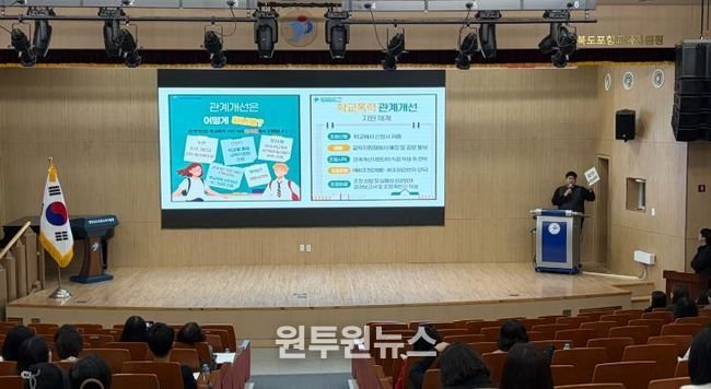(원투원뉴스) 경상북도포항교육지원청은 4월 21일 실시한 2026년 상반기 전문상담인력 역량강화연수에서 관내 전문상담교사 등을 대상으로 학교폭력 사안 발생 초기 단계에서의 ‘학교폭력 관계개선 프로그램’ 적극 활용 방안을 안내했다.