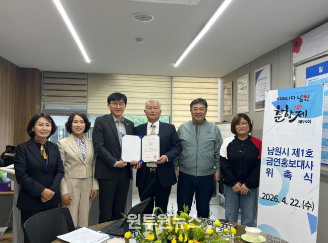 (원투원뉴스) 남원시보건소는 4월 22일 ‘제1호 금연 홍보대사 위촉식’을 개최하고, 남원거점스포츠클럽 진장석 회장을 공식 홍보대사로 위촉했다.
