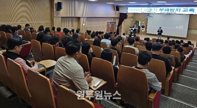 (원투원뉴스) 영동교육지원청은 22일 학교지원센터 시청각실에서 영동 관내 교(원)장 및 행정실장, 신규 및 승진자를 대상으로 부패 예방과 윤리의식 강화를 위한 교육을 실시했다.