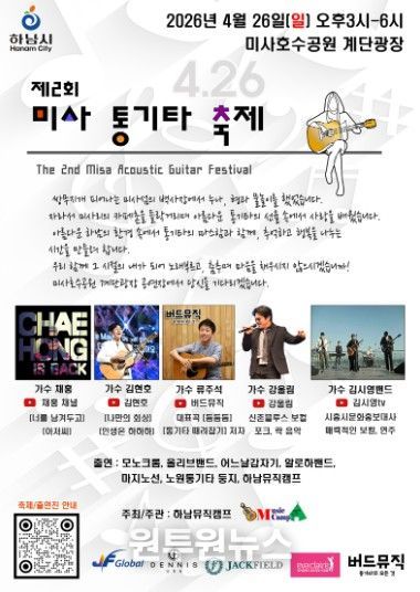 (원투원뉴스) 하남시 지역 예술인들이 참여하는 '제2회 미사통기타축제'가 오는 4월 26일 오후 3시부터 미사호수공원 계단광장에서 개최된다.