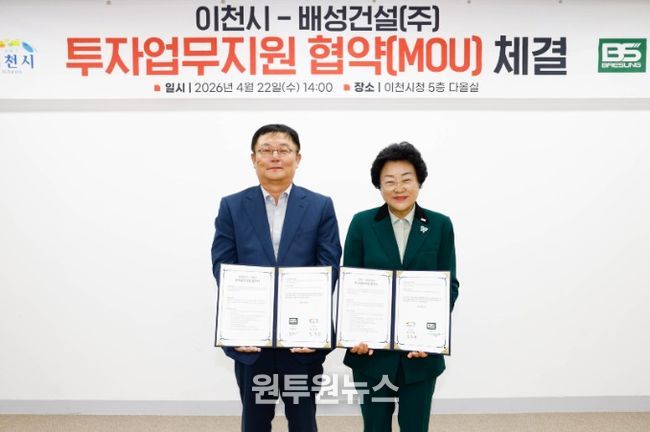 (원투원뉴스) 이천시가 22일 배성건설㈜와 203억 원 규모의 투자업무지원협약을 체결하고, 기업의 신규 공장 신설을 본격 지원한다.
