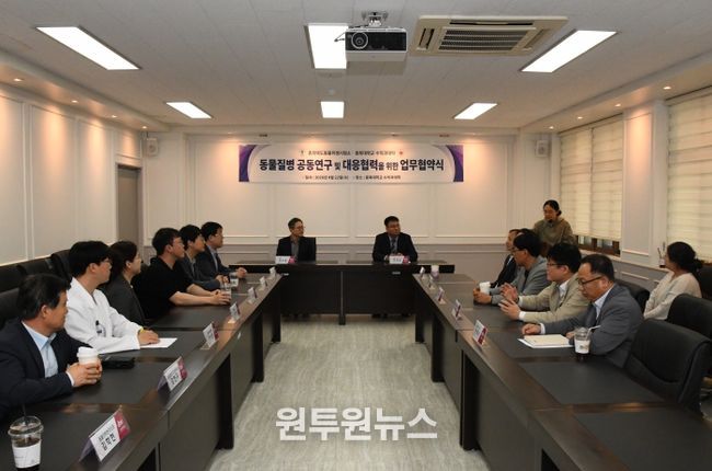 (원투원뉴스) 충청북도동물위생시험소와 충북대학교 수의과대학은 22일 충북대학교에서 동물질병 공동연구 및 대응을 위한 업무협약(MOU)을 체결하고 가축전염병 대응 능력을 고도화하겠다고 밝혔다.