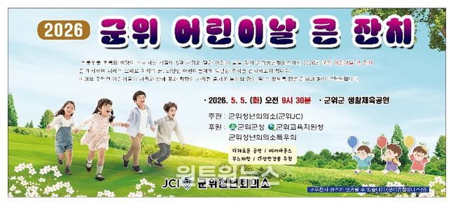 이번 행사는 2026년 5월 5일 오전 9시 30분부터 군위생활체육공원에서 열리며, 군위청년회의소(회장 김주환)가 주관한다. 행사에서는 아동 권리헌장 낭독과 모범어린이 시상을 시작으로, 18종의 체험부스 운영과 기념 공연이 이어질 예정으로 어린이와 온 가족이 함께 즐길 수 있는 다채로운 프로그램이 마련된다.