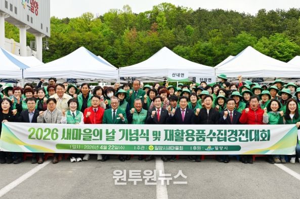 (원투원뉴스) 밀양시새마을회(회장 이선동)는 22일 밀양종합운동장에서 새마을운동 제56주년을 맞아 ‘제16회 새마을의 날 기념식’과 함께 ‘우리동네 새단장’ 재활용품 수집 경진대회를 개최했다.