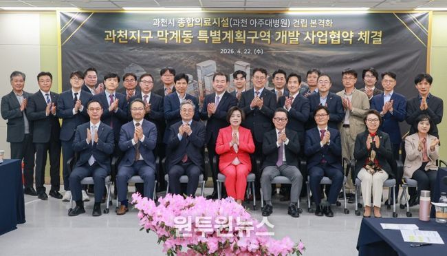 (원투원뉴스) 과천시는 과천지구 막계동 특별계획구역 개발사업의 우선협상대상자인 아주대학교병원 컨소시엄과 과천도시공사가 사업협약을 체결하며 사업 추진에 본격 착수했다고 22일 밝혔다.