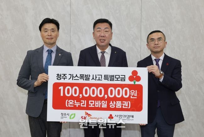 (원투원뉴스) 청주시는 SK하이닉스㈜(대표 곽노정)가 22일 청주 가스폭발 사고 피해지원을 위해 충북사회복지공동모금회를 통해 1억원(디지털 온누리상품권)을 기탁했다고 밝혔다.