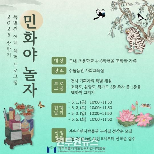 박찬식 민속자연사박물관장은 “이번 프로그램을 통해 해학과 풍자가 살아 숨 쉬는 민화와 제주에서 꽃을 피운 제주문자도에 대해, 알아가는 소중한 시간이 되길 바란다”고 말했다.