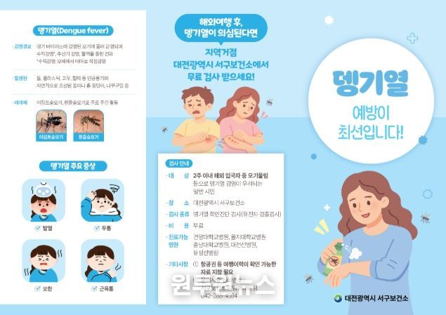 (원투원뉴스) 대전 서구가 해외 유입 모기 매개 감염병인 뎅기열의 지역사회 토착화를 막기 위한 방역 최전선에 나선다.