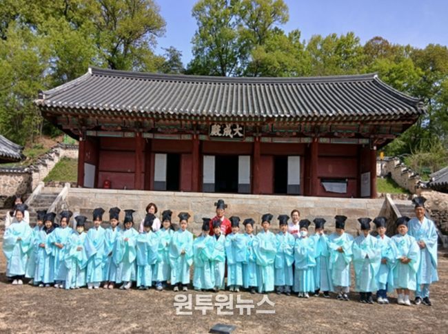 (원투원뉴스) 천년 역사의 대설위 상주향교에서는 2026년 4월 21일 상주시 상영초등학교 3학년 1반 어린이 22명을 대상으로 전통선비문화체험 행사를 가졌다.